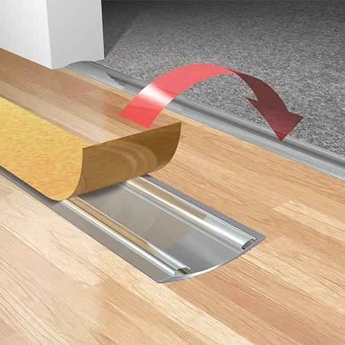 Ein Übergangsprofil wird mit Klebeband montiert.jpg